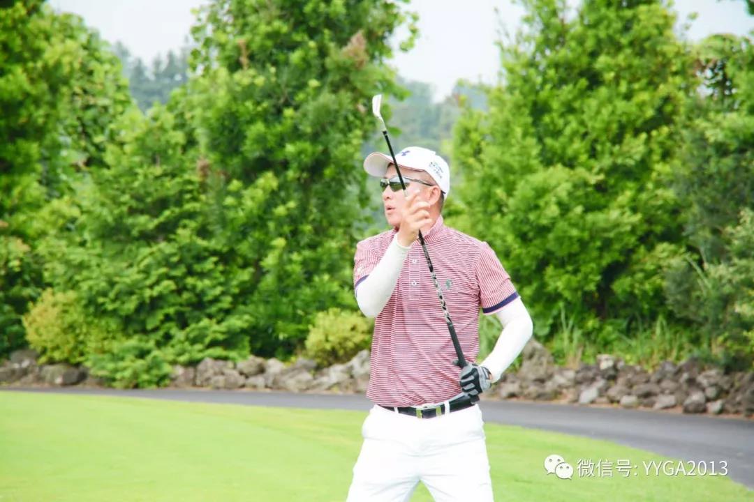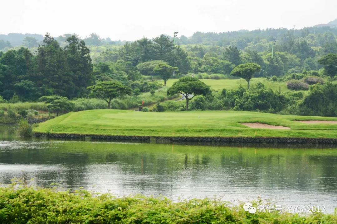 享受着七月济州岛凉爽的气温,享受着女王球场山水相依,享受着球场苍翠欲滴的浓绿,那没来得散尽的雾气像淡雅丝绸,一缕缕地缠在它的腰间,阳光把每片叶子上的露水,都变成了五彩的珍珠。