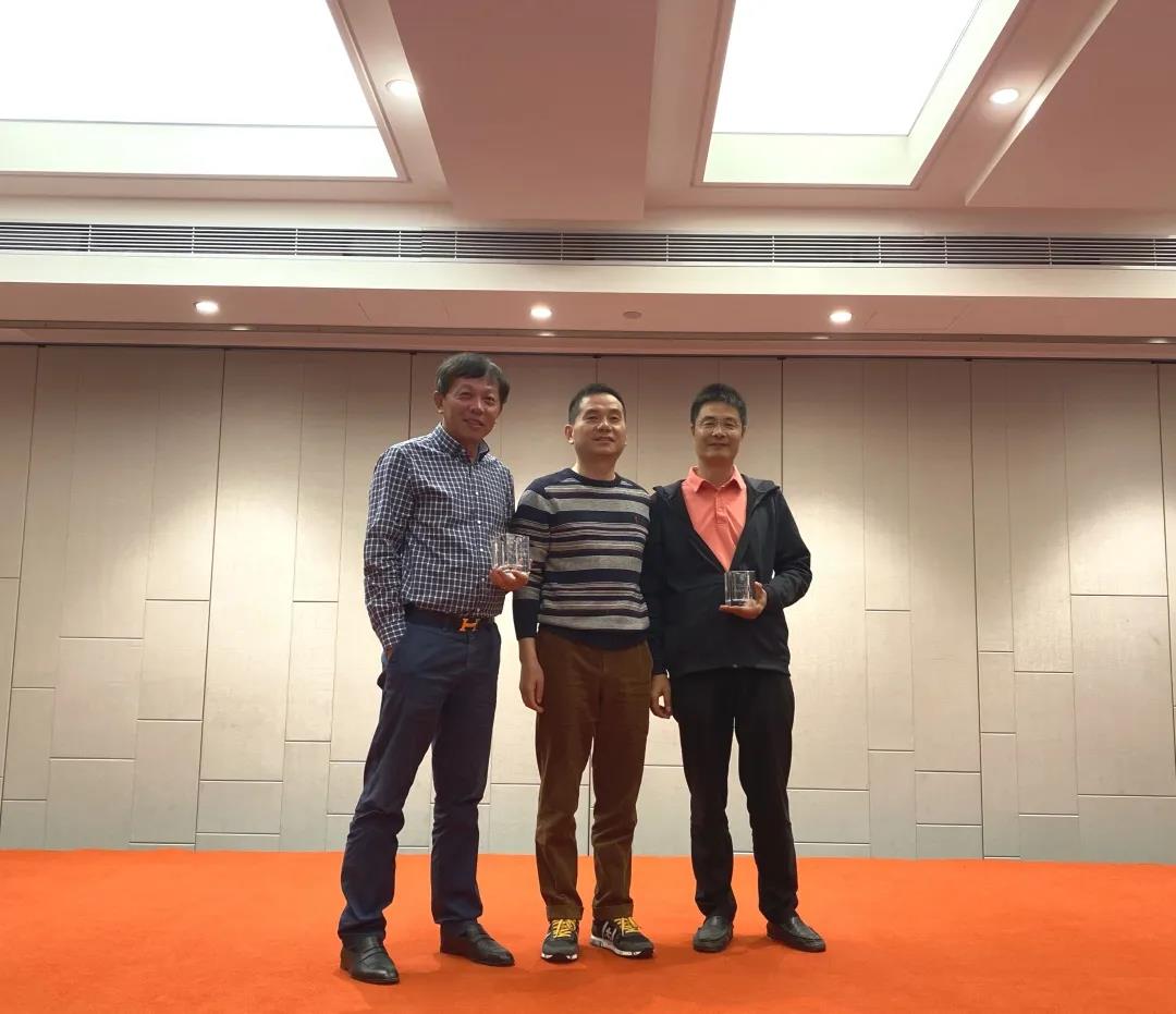 周明辉副会长为B组净杆冠军汪金达、B组净杆亚军沈云炜、B组净杆季军蒋卫卫颁发奖杯。