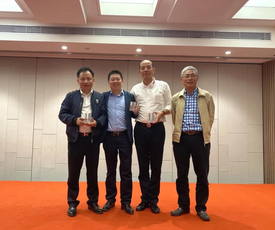 周云冲副会长为最近旗杆奖获得者朱良坤,最近中线奖获得者章华明颁发奖杯。
